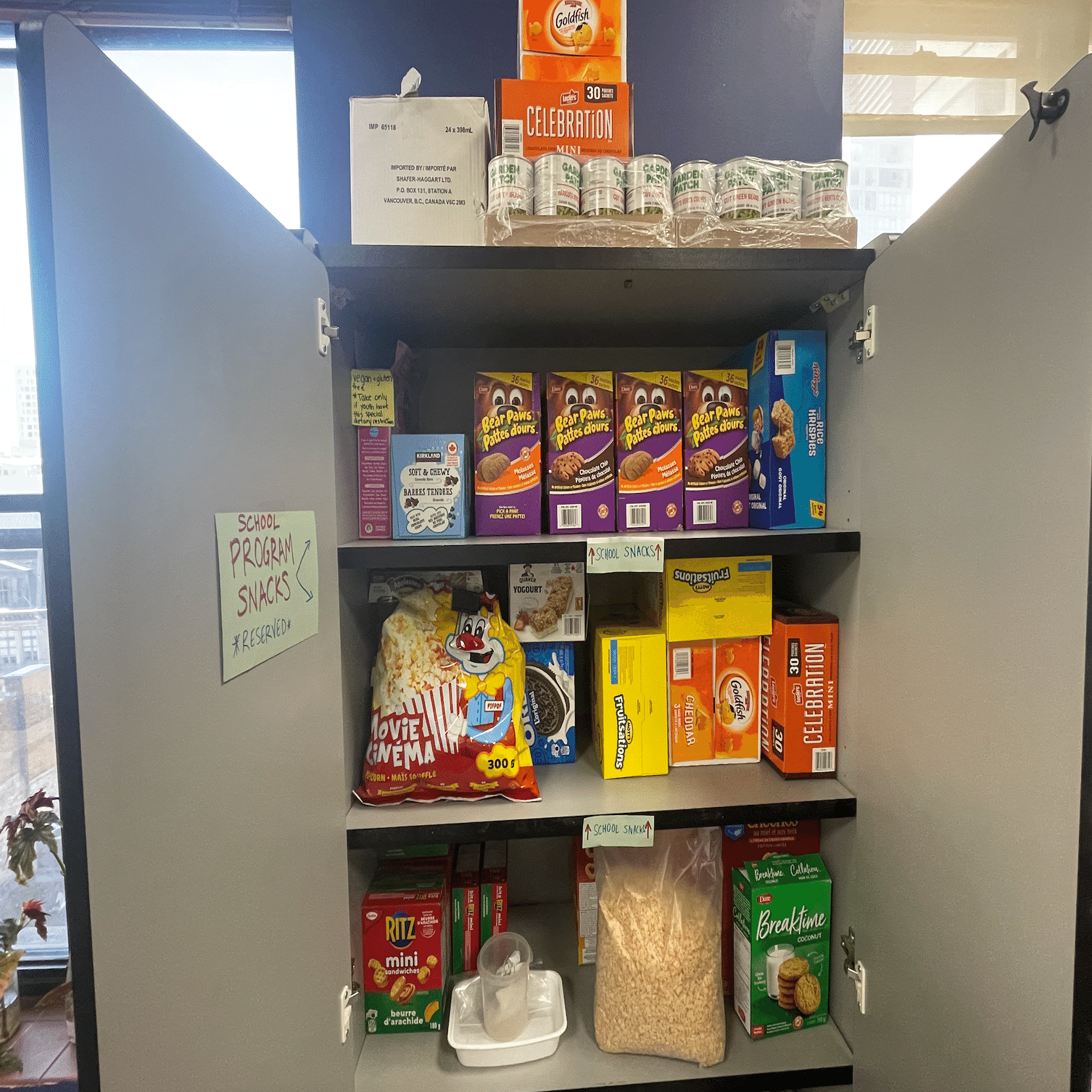 LOVEのプログラムやオフィスでのワークショップやアクティビティでは、必ずユースにちょっとした菓子を配ります。そのためキッチンのパントリーにプログラムやオフィスに来たユースに提供できるよう常にお菓子がストックされています。